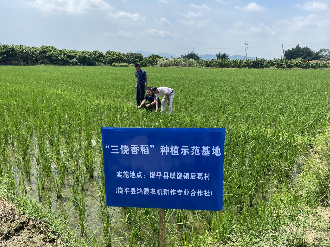 9月14日下午,市农科中心科技人员前往饶平县鸿霞农机耕作专业合作社的“三饶香稻”种植示范基地开展科技服务