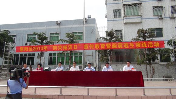 演练结束后,惠阳区科协、民政局、科技局、疾控中心、气象局、消防大队等部门在校园内举行“防灾减灾日”宣传教育活动,接受相关应急防灾减灾知识咨询,并发放宣传资料。当日,各镇、街道、经济开发区悬挂宣传标语20多条。