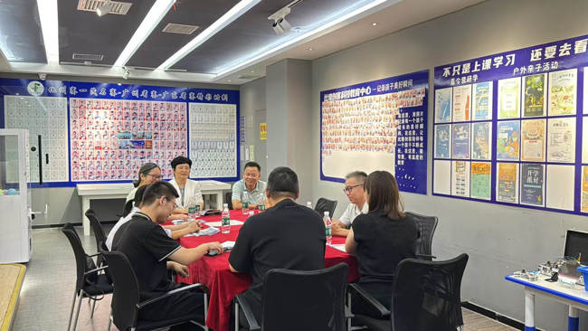 调研交流座谈会上,比隆创客负责人刘晓泽介绍了该机构的基本情况,该机构创办于2018年,专注于青少年的科技与创新的科学教育,开设有完整的科创课程,在训的学生在各类科创赛事中取得不俗的成绩。调研会上,大家围绕如何满足青少年学生的科技教育需求,提升青少年学生的科学思维,动手能力畅所欲言。