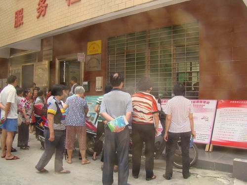 社区市民参观气象科普展板