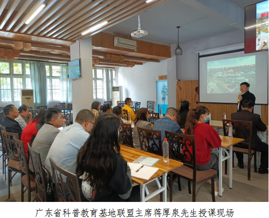 此次培训为期1天。特邀广东省科普教育基地联盟主席蒋厚泉先生授课,围绕《做好新时代科普工作》《新时代科普活动的品牌打造及活动策划》等主题进行讲授,与学员互动交流,课后还带着学员深入科普教育基地现场教学,形式多样,内容丰富,具有很强的针对性、实效性和系统性。