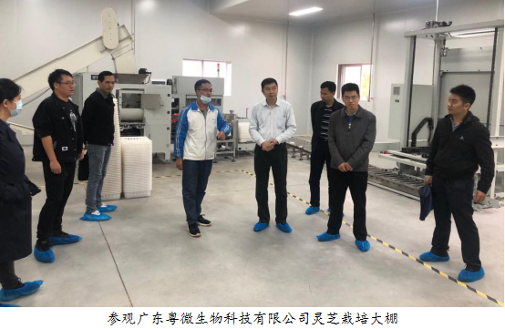 在广东粤微生物科技有限公司,成绍强一行参观了全自动化的食用菌栽培制种车间、栽培大棚以及食用菌原料的加工车间。据公司负责人介绍,公司技术依托广东省微生物研究所这个全国最大的食用菌种质资源库,重点针对珍稀食用菌的工厂化栽培和食用菌高活性分子基料制造项目进行成果转化,培育了一大批独有的食用菌品种,涵盖了赤芝、紫芝、猴头菇、蛹虫草、银耳等各类珍稀食用菌,其中源自西藏的品种——白肉灵芝已在韶关基地栽培成功。公司可实现各类菇品如灵芝、猴头菇、蛹虫草、银耳等的工厂化自动栽培。并可实现菇品的自动化包装、菇品煲汤料及各类袋泡茶的生产和加工。成绍强主席希望广东粤微生物科技有限公司充分发挥自身在科技创新、技术服务、成果转化等方面的优势,培育发展生物科技产业,为韶关构建现代产业体系贡献智慧和力量。