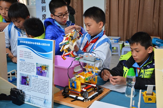 澄海区机器人教育自2014年底启动以来,在各方的共同努力下,取得了明显成效。从开始的18所扩至现在的42所,学校类型从小学扩展到中小学。目前,全区中小学校中有条件建机器人教育实验室的基本实现全覆盖。在开展机器人教育不到两年的时间里,各学校投入了极大的工作热情,克服了师资短缺、无教学经验等困难,在乐博士团队的支持下,通过高密度的培训交流、不断的教学实践和探索,各学校的机器人教育都步入正轨,在师生中反响良好,特别是参与的学生都表现出浓烈的学习兴趣。开展机器人教育,既锻炼了学生的动手能力,又培养了学生创新设计、合作交流和综合解决问题的能力。澄华中心小学的机器人创新项目《货物搬运小能手》获第31届汕头市青少年科技创新一等奖,并将于4月8日参加在珠海举行的广东省第31届青少年科技创新大赛。
