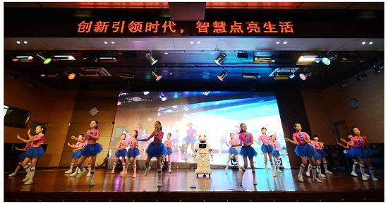 致辞结束,现场又给意犹未尽的学生们带来生动有趣的科普剧表演、无人机表演、脑科学VR体验、科普灯谜互动和火山爆发科学实验表演等精彩节目,各个环节设计紧扣社会焦点和热点科学内容。最后一个科技与艺术共舞的节目,融合钢琴弹奏、舞蹈表演和机器人动作为“金平科普汇演”划上完美的句号。