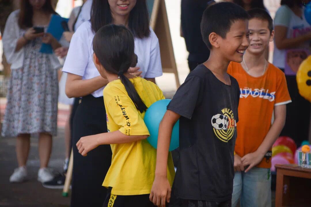 分享环节过后,科普志愿者们组织小朋友们玩起了新奇好玩的游戏,增加和小朋友们互动的同时,也在鼓励他们要勇敢表现自己,勇敢面对挑战。爽朗的笑声充斥在校园,让我们觉得一切都有了意义。