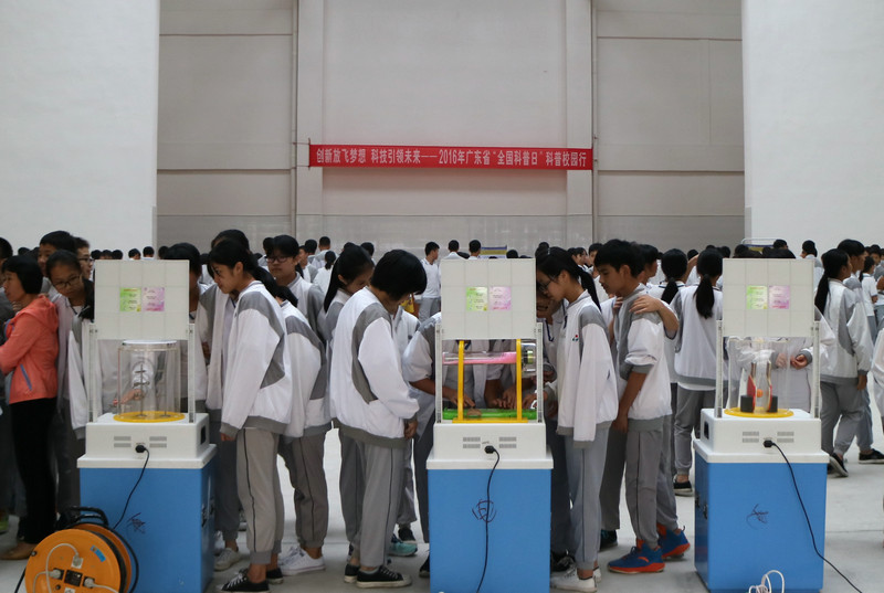 为激发全民尤其是青少年崇尚科学、探索未知、敢于创新的热情,让师生了解到更多的航天科普知识,广东省科普中心联合云浮市科学技术协会、云浮市教育局、广东省航空学会,邀请上海市航空学会、上海航宇科普中心于11月2日在云浮市新兴县实验中学共同举办了2016年广东省“全国科普日”科普校园行暨粤沪航空科普教育交流活动。省科普中心副主任陆朝光、云浮市科协副主席陈华坚,云浮市教育局体卫艺科科长孙燕佳,各县(市、区)科协、科技局有关领导,市有关学校科技教师,以及新兴县人民政府、新兴县科协、新兴县教育局、新兴县实验中学等主办、承办、协办单位的有关领导和相关人员,科教专家和科普志愿者、学校师生等约3000多人参加了此次活动。