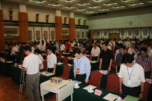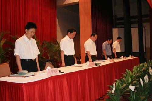 在全省青少年科技教育会议开始之前,与会人员全体起立,为四川汶川大地震遇难同胞默哀一分钟。