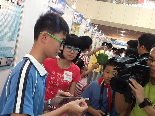 李凯政同学向媒体记者介绍自己的创意发明