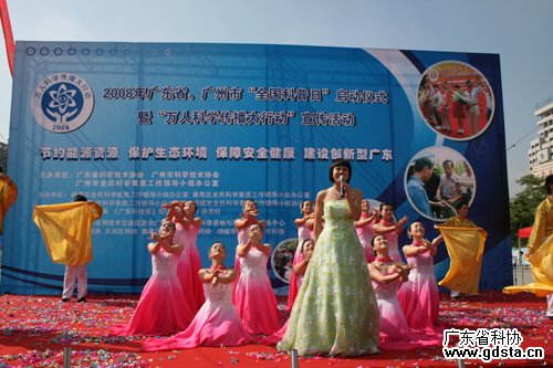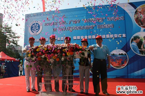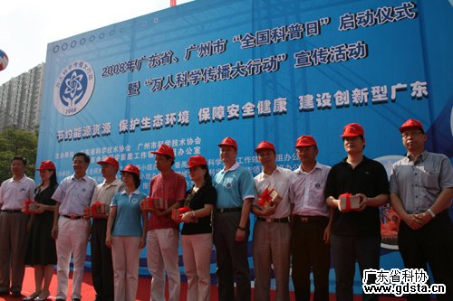 9月20日上午,2008年广东省“全国科普日”暨“万人科学传播大行动”活动在广州市英雄广场正式启动。活动由广东省科协、广州市科协、广州市全民科学素质工作领导小组办公室联合主办,今年科普日的主题为:节约能源资源、保护生态环境、保障安全健康、建设创新型广东。广州市委常委、组织部部长方旋、广州市副市长徐志彪、广东省科协党组书记、副主席梁明,以及谢先德、刘焕彬等院士参加了启动仪式。