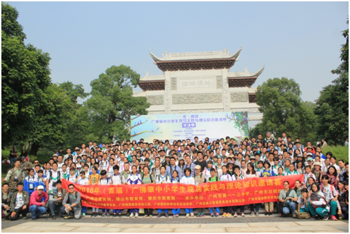 图为2016年(首届)广佛肇中小学生观鸟赛参赛人员合影