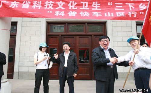 3月17日,由广东省科协、省委宣传部、省妇联、省农科院联合举办的“2008年广东省文化科技卫生‘三下乡’——科普快车山区行活动”启动。省科协党组书记、副主席梁明同志为参加“三下乡”活动的专家团授旗。