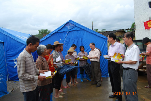 10月11日,阳江市科协主席林贤超带领市科协全体干部在阳春市科协领导的陪同下来到阳春市养猪协会、养鱼协会,对遭受重大损失的协会会员表示慰问,给各农技协和受灾乡镇配分了一批《农村常见灾害防治手册》。随后,林主席一行来到灾区阳春市三甲镇大新村,详细询问了该村的受灾情况和群众的生活状况,要求各县(市、区)科协和广大科技工作者要组织开展广泛的科普宣传活动,帮助群众,特别是灾区群众及时、有效地了解灾情危害和灾后卫生、生活科学知识,提高灾害自救意识和能力。受省科协的委托,市科协干部到三甲镇大新村深入受灾农户,分发《农村常见灾害防治手册》等科普读本,向群众传授相关的科普知识,并向受灾群众赠送大米、粮油等生活用品,鼓励灾区群众安心生活,要相信在党和政府和社会各界的帮助下渡过难关,积极开展灾后复产工作,早日过上小康生活。