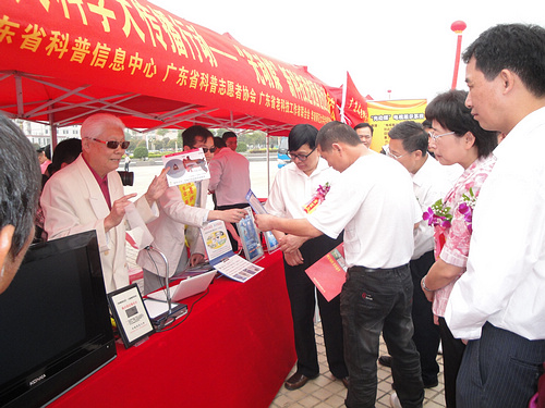 2011年4月13日,广东省科协、广东省委宣传部、广东省科技厅、河源市政府等单位,在河源东源县启动了2011年广东省文化科技卫生“三下乡”暨“千会服务千村”行动。在“三下乡”活动现场,有两位年过七旬的科普志愿者十分引人关注,他们分别是光动媒技术研发人、华南师范大学退休教师秦兆年教授(77岁),和他的妻子刘达莲老师(78岁)。