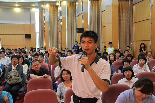 为扩大活动的影响力,主办方联合《广州日报》共同举办此次讲座,希望能借用新闻媒体的力量让更多市民了解讲座的相关内容。此外,主办方还尝试使用手机短信、微博进行活动预告,取得了良好的宣传效果。当天活动现场人头涌动,许多市民在报纸、网站、微博上得知活动预告后纷纷前来参加活动。部分市民在活动开场前1小时就来到现场。一位小男孩在家长的带领下来到现场,小男孩看到背景板上偌大的太空人造型已是异常兴奋,手舞足蹈乐得不可开交,不时向工作人员咨询何时才能看到真正的“太空人”。活动开始前半个小时现场已是座无虚席。主办方还加设了大量临时座位,但仍有许多市民因座位不够,站着听完了整场报告。据了解,演讲开始时,现场观众已经近千人,远远超出主办方原计划600人的预期。