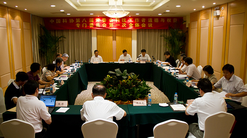 8月14日,中国科协第八届常委会科技工作者道德与权益专门委员会第一次会议在广东省东莞市召开。来自全国各地的科技工作者道德与权益专门委员会十多位委员及顾问出席了本次会议。中国科协副主席、中南大学校长、工程院院士黄伯云主持会议,并传达了中国科协常委会及领导同志对中国科协科技工作者道德与权益专门委员会的指示精神。中国科协副主席、中国工程院副院长、党组成员李静海通报了中国科协第八届常委会科技工作者道德与权益专门委员会的组成和职责。