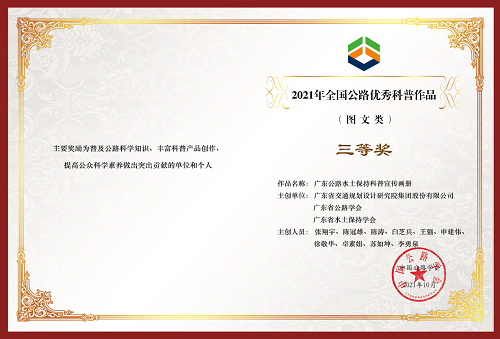 三等奖:《广东公路水土保持科普宣传画册》——广东省交通规划设计研究院集团股份有限公司、广东省公路学会、广东省水土保持学会