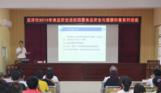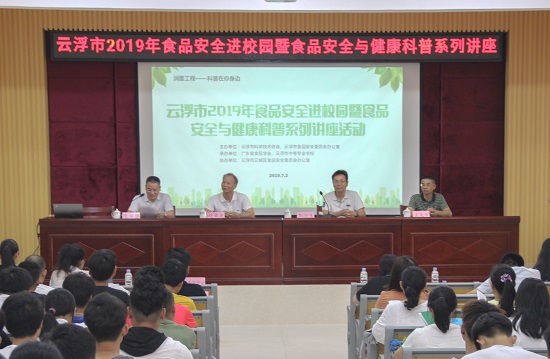 为向社会公众普及知识,提升食品安全意识,深入开展食品安全进农村(社区)、进集市、进企业及学校,云浮市2019年食品安全进校园暨食品安全与健康科普系列讲座活动在云浮市中等专业学校顺利召开。此次活动由云浮市科学技术协会、云浮市食品安全委员会办公室主办,广东省食品学会、云浮市中等专业学校承办,云浮市云城区食品安全委员会办公室协办。来自云浮市科协、食安办的领导、食品安全科普专家、行业组织代表、新媒体从业者、消费者、云浮市中等专业学校师生代表等共约280多人参加了本次讲座。