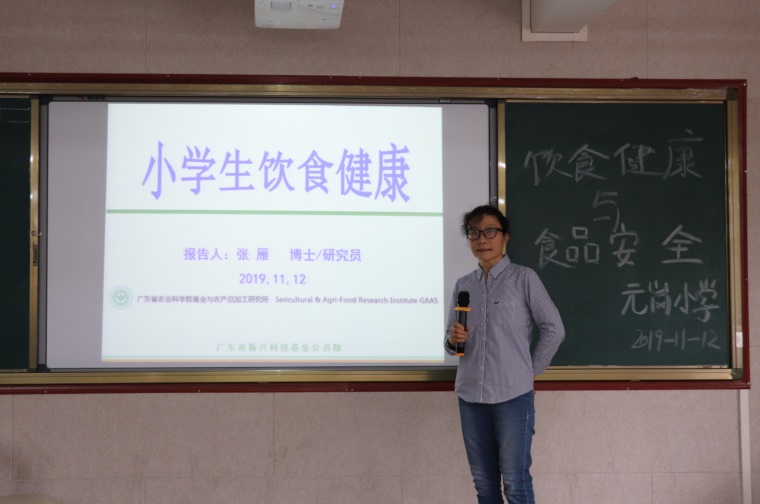 11月12日,广东省食品学会科普专家、广东省农业科学院蚕业与农产品加工研究所张雁研究员到元岗小学,为五年级的学生开展了一场“小学生饮食健康”的食品专题讲座。