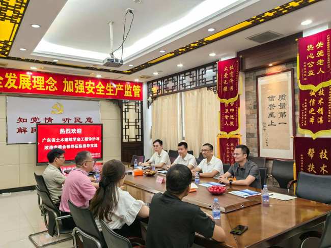 10月14日,专委会副主任委员、建科工程公司党支部书记、总经理陈伟坚,专委会秘书长、建科工程公司副总经理林启辉,专委会副秘书长、建科工程公司副总经理周伟斌等带领团队前往广州市胜特建筑科技开发有限公司(以下简称“胜特公司”)开展参访交流活动。作为两家省内加固改造领域知名的国企、民企,以及分别是省土木学会诊治与改造专委会挂靠单位和省勘协加固分会会长单位,双方在科技创新、技术研发和专委会管理方面积累了丰富的经验,此次参访为双方搭建了深度沟通的桥梁。