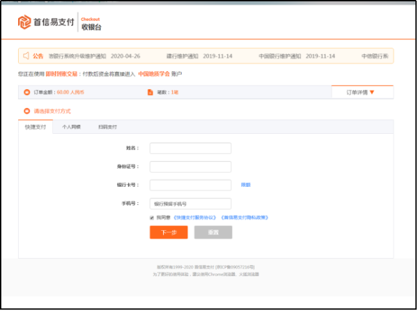 8、有三种付款方式,选一种自己方便付款的进行付款。