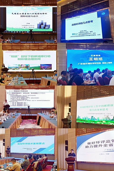 环评分会主任委员李朝晖主持高端论坛。复旦大学包存宽教授、北京师范大学李巍教授、中科院广州能源所王文军副研究员围绕“气候变化因素纳入环评体系”“政策环境影响评价”“碳减排行动和环境治理协同”等议题作学术报告并进行互动交流。生态环境部环境规划院于雷副研究员、广东省环境科学研究院规划所所长王明旭就广东省“三线一单”生态环境分区管控体系及实施运用进行解读与交流。全体委员会议上,环评分会秘书长陈桂红介绍了环评分会成立以来相关工作进展及下一步工作计划,各委员单位代表及专家委员围绕机构设置、委员组成、突出服务、提高质量、规范市场、加强培训等方面对环评分会工作发表意见和建议。会议审议通过《广东省环境科学学会环境影响评价分会管理办法》,签署《环境影响评价行业自律公约》,并邀请广东省环境技术中心、广东智环创新环境科技有限公司的有关专家从环评技术复核及碳排放评价等方面作研讨交流。