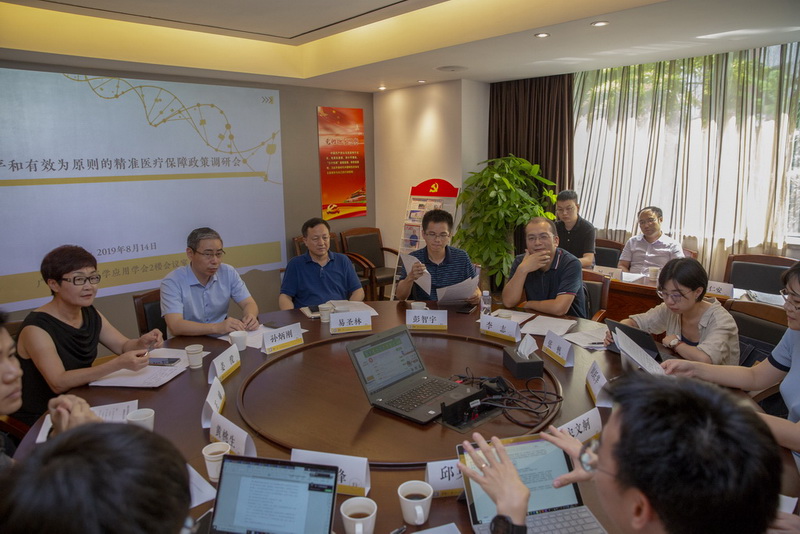 调研组成员国家卫生健康委卫生发展研究中心卫生政策与技术评估室宋文舸调研员、刘跃华副调研员等5位专家,与广东省精准医学应用学会协助邀请到的广东省卫生健康委、医疗保障局、药品监督管理局等行政部门人员,医院管理者、医院医保负责人、临床专家、检验专家、药学专家,以及基因检测、生物医药企业代表等多领域、多层次专家进行了深入、广泛的访谈和交流。