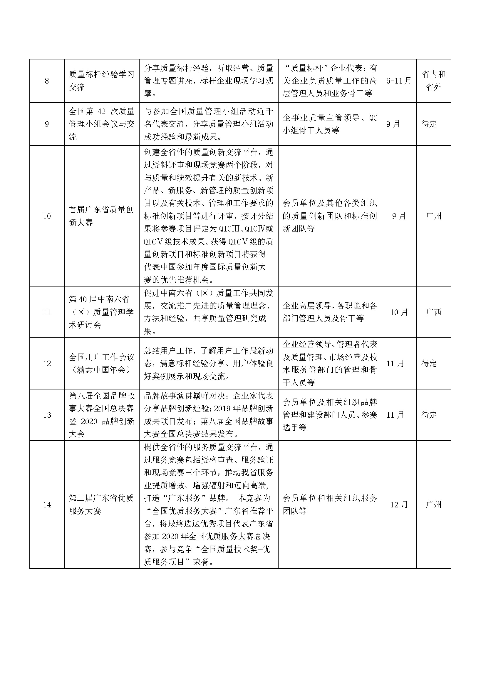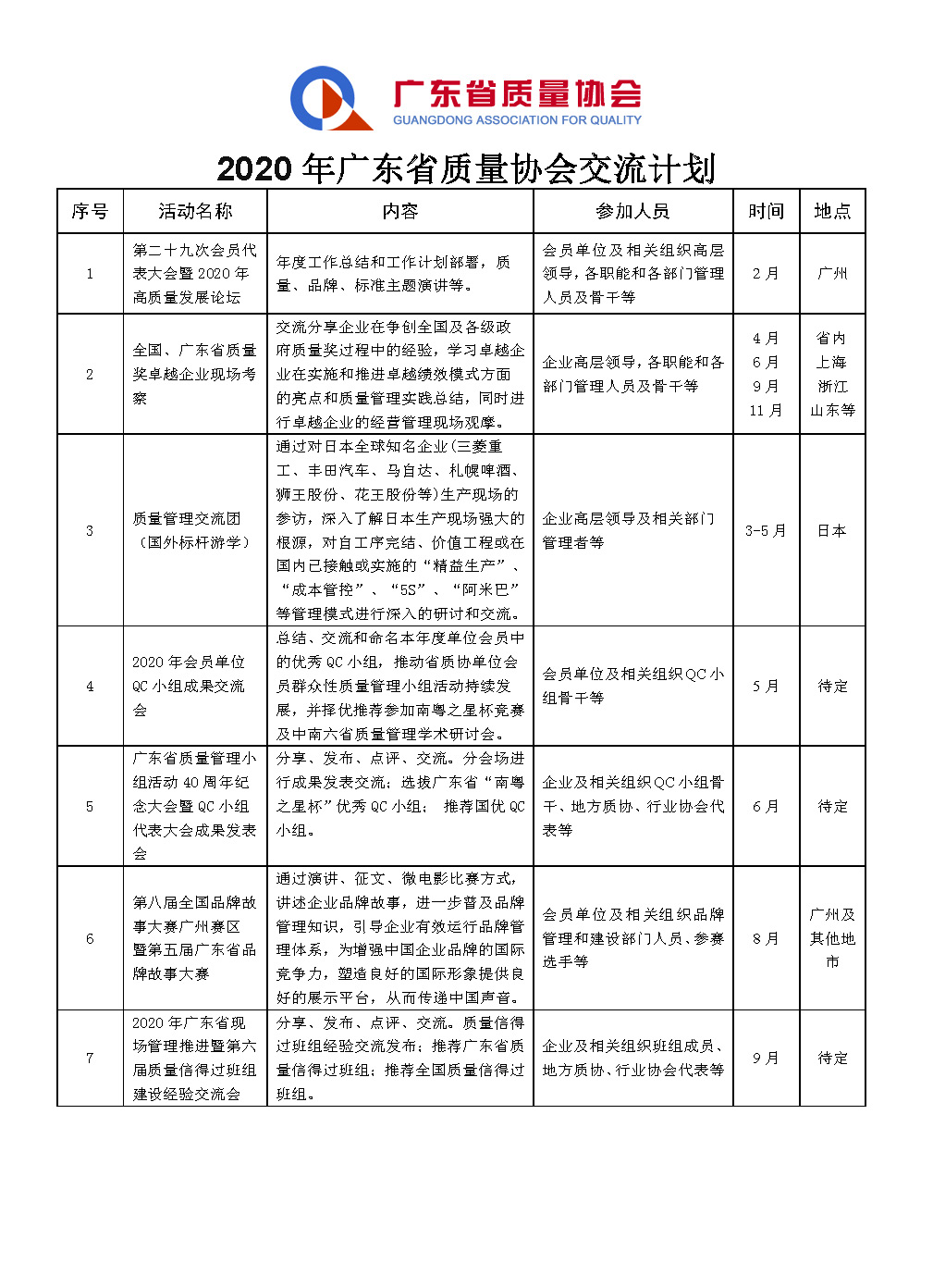 2020年广东省质量协会交流计划